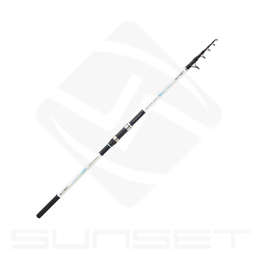 Ces cannes SUNSET MURANA TSW permettent de pratiquer la pêche en mer en surf-casting depuis la plage, les jetées et les digues. Les cannes télescopiques SUNSET MURANA TSW sont munies d’un blank puissant (100/200g) permettant de pêcher les loups lors des coups de mer avec des plombs lourds et / ou avec de gros appâts ! Le scion peint permet de bien visualiser les touches