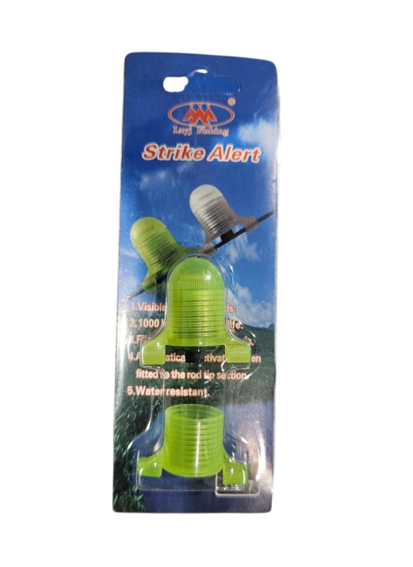 Fixez le Strike Alert au scion de votre canne et pêchez en toute tranquillité ! Le Strike Alert avec indicateur lumineux vous avertit lorsqu’un poisson mord à l’hameçon. Visible à 90 mètres, il suffit de placer le Strike Alert à 5 cm sous le scion. L’indicateur clignote en vert jusqu’à ce qu’un poisson morde à l’hameçon. À ce moment-là, le Strike Alert clignote en rouge ! L’appareil s’éteint automatiquement lorsqu’on le retire de la canne. Un modèle pour eau salée est compatible avec toutes les cannes pour la pêche en mer et la pêche au silure (qui ont généralement un scion de plus grand diamètre). Le modèle pour eau douce est compatible avec toutes les cannes pour eau douce. Restez vigilant avec le Strike Alert !