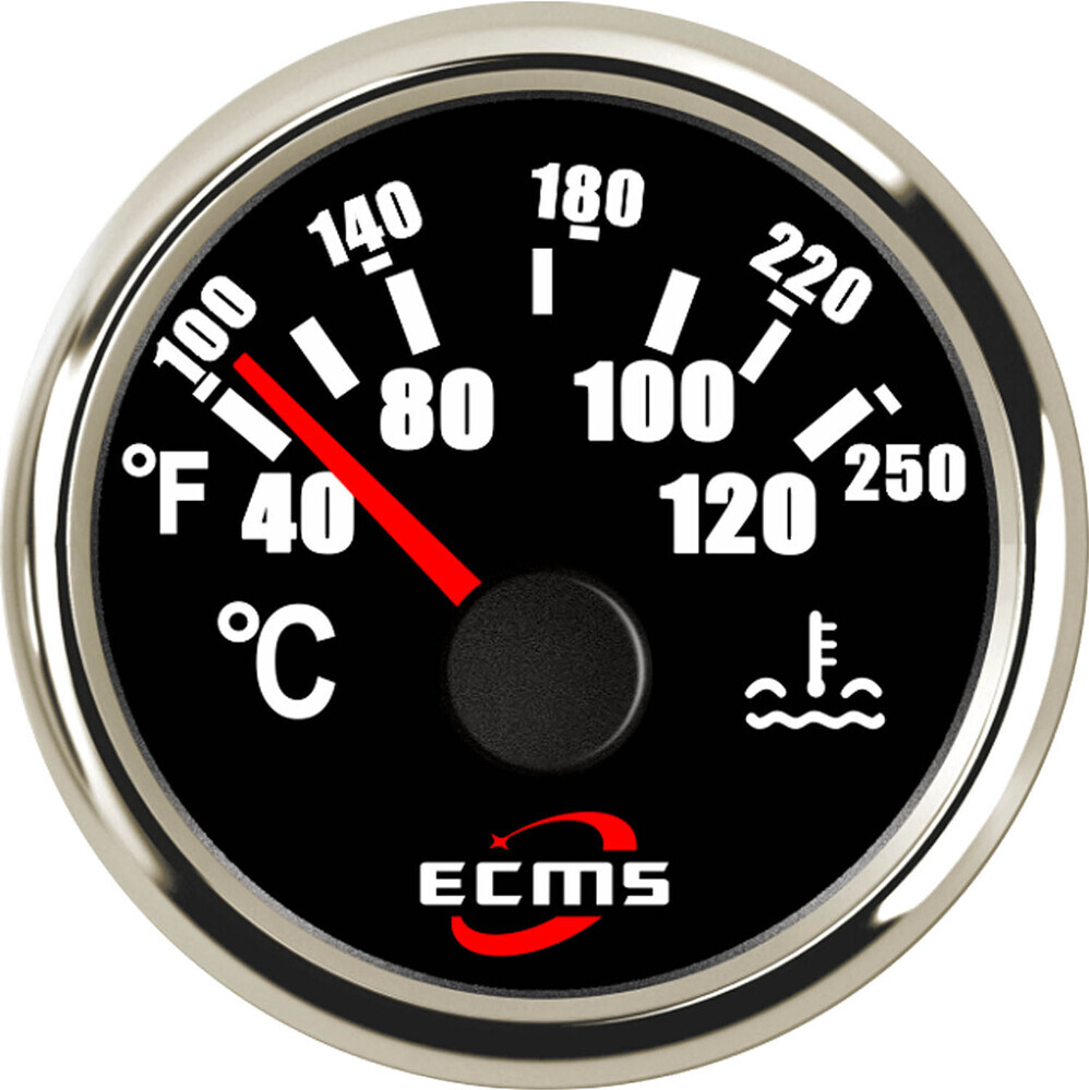 ECMS Water Temperature Gauge Black & Chrome Temp Range 40 120?C Dia 2″ 52MM 12V 24V Part 800-00034