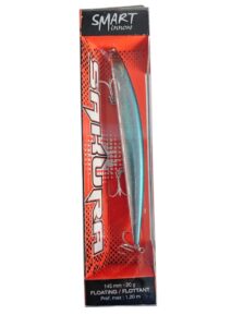 Sakura Smart Minnow, produit en deux versions, SMART MINNOW 145F et SMART MINNOW 165F, est un long jerkbait au profil classique de « slim minnow », caractérisé par une nage parfaite et une excellente capacité de lancer. La palette avant est résistante aux chocs et les couleurs sont faites pour durer. Le système de poids interne se déplace dans le sens de la queue lorsque le leurre est chargé vers l’arrière avant la poussée de lancer, optimisant ainsi la précision et la distance. Le pattern de ces leurres de mer, en nage rythmée, ponctuée de pauses, est erratique avec des embardées évidentes. Le Smart Minnow 145F à flottaison lente est excellent pour la recherche des bars et barracudas en eaux peu profondes ou des barracudas rusés des estuaires ou des zones portuaires. Le Sakura Smart Minnow 165F, quant à lui, convient à la recherche de poissons de serre et d’autres grands prédateurs marins. Profondeurs de nage de 40 cm à environ 1 mètre.