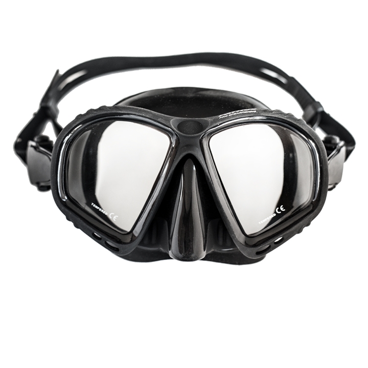 Masque de plongée et de chasse sous-marine, à faible volume intérieur et excellente visibilité.