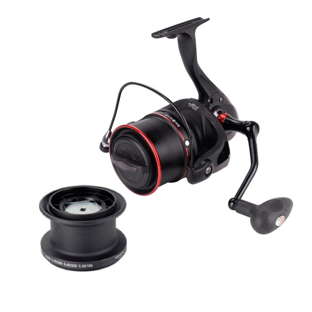 Fabriquée en aluminium, la bobine du moulinet DEBAO TP8000 a une forme particulière (conique et peu profonde), qui permet des lancers plus longs et plus faciles. C’est pourquoi on l’appelle “long cast”.