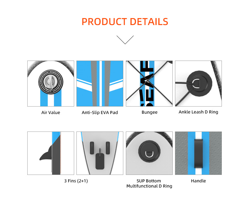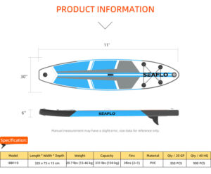 Classée comme planche de voyage rapide, sa stabilité la rend idéale pour les longues et rapides sorties sur l’eau. L’IBB110 est fabriquée en PVC de qualité supérieure enveloppé d’un matériau à coussin d’air brossé, ce qui la rend plus rigide tout en étant légère, portable et facile à ranger. L’IBB110 est dotée d’un aileron central amovible pour vous permettre de vous orienter pendant la pagaie, et d’un coussin antidérapant pour maintenir votre équilibre. Le cordon élastique du SUP offre un rangement sécurisé pour vos effets personnels. Un ensemble complet d’accessoires comprend la planche, la pagaie, la corde de jambe, la pompe, le sac à dos et un kit de réparation. De plus, vous pouvez installer un siège sur la planche.
