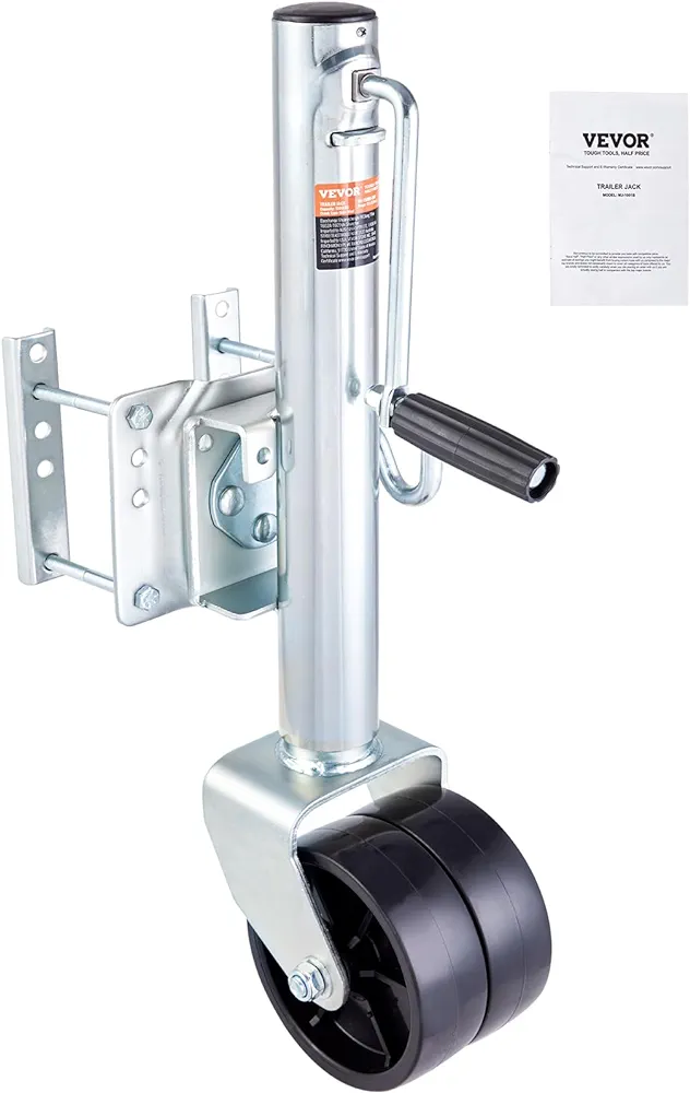 VEVOR boat jack with a load capacity of up to 1500 lbs. Equipped with PP tires, it provides a larger surface area for smooth and stable travel. The ergonomic handle allows for effortless trailer lifting. Experience the reliability you need for every memorable outdoor adventure!
