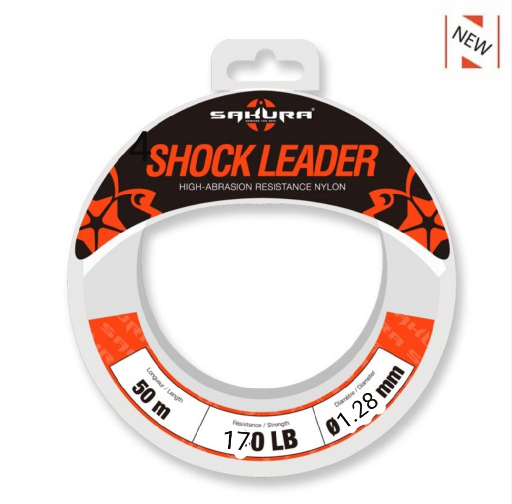 Spécifiquement conçu pour la pêche sportive en mer, le Shock Leader est de couleur transparente pour ne pas éveiller la méfiance des carnassiers dans des conditions de clarté et de luminosité intense. Pour la pêche du thon rouge avec des petits leurres (25 à 60 grammes), les calibres de 80 et 100 lb seront adéquats et permettront d’atteindre de bonnes distances de lancer en ayant suffisamment de résistance. En pêche exotique, pour lancer des poppers et des stickbaits à la recherche des carangues, carpes rouges, tarpons, etc. il faudra employer des diamètres plus importants, oscillant entre 130 et 170 lb. Pour le jigging, sous les tropiques, les tailles de 100 à 130 lb sont des standards.