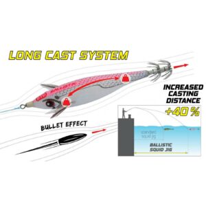 Présenté à l’EFTTEX 2019 à Bruxelles, Ballistic est de loin le meilleur jig calamar jamais conçu en termes de distance de lancer.