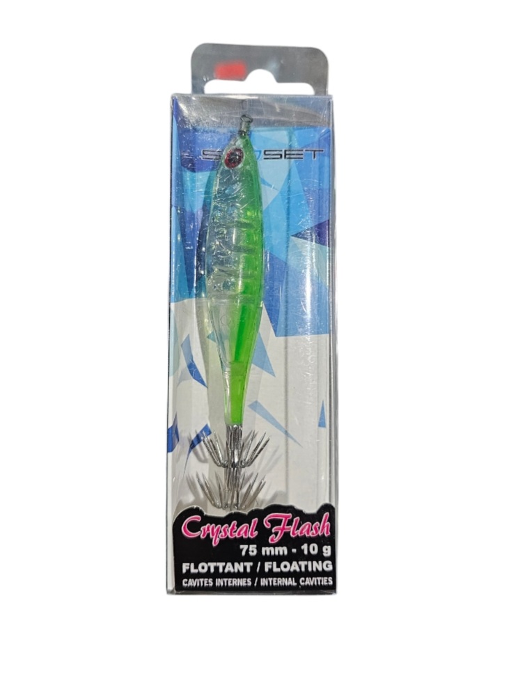 Turlutte sunset Sunsquid Crystal Flash 10gr 75mm green